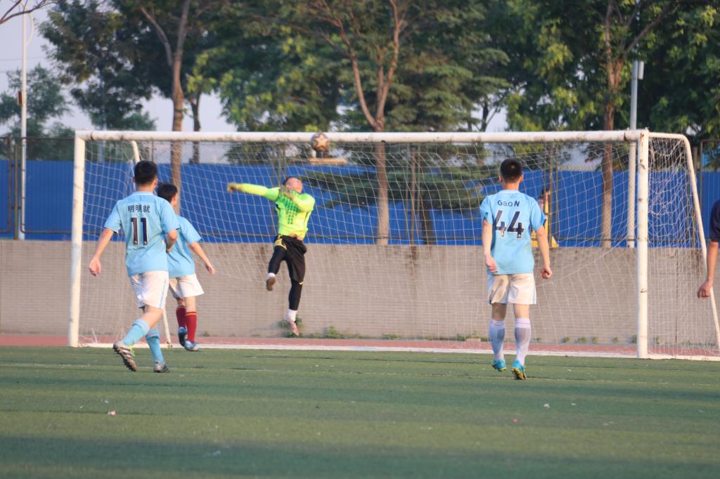 随着裁判的一声哨响,备受关注的三四名决赛在计科院队和文学院队之间展开,为表示对16级队员的尊敬,双方均由全体16级队员首发。16级球员竞争激烈,双方对攻凶猛,很快比分便来到了2:2。比赛开场20分钟后,两队部分17级队员替补登场,比赛对抗逐渐激烈,文学院队球员采取高位逼抢,前场传控的战术,我院球员则全线退守寻求反击机会。第30分钟,我院球员中场断球拿到反击机会,带球突入禁区,可惜被文学院后卫大脚解围。第35分钟,文学院在禁区边缘获得任意球机会,10号球员一脚远射将球攻入球门,我院0:1落后。丢球5分钟后,我院后卫再出失误,让对方前锋在禁区内轻松射门,文学院再入一球。下半场双方换边再战,我院虽然落后两球,但并没有因此放弃。第46分钟,我院球员打出精彩配合,刚上场就对文学院球门造成了威胁,先是在前场反击中连过两人造成对手犯规,又利用直接任意球的机会踢出一脚角度刁钻的射门,文学院门将飞身救险,力保球门不失。最终下半场比赛双方均无进球,比分定格在了2:4。第90分钟,比赛圆满结束。虽然我院输掉了这场比赛,但我们收获了全场观众的掌声!